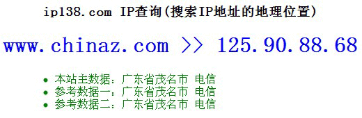 通过IP在线查询,得知其对应的IP为:广东省茂名市-电信。难不成CHINAZ报道的文章命中某某要害,而被电信和谐啦?