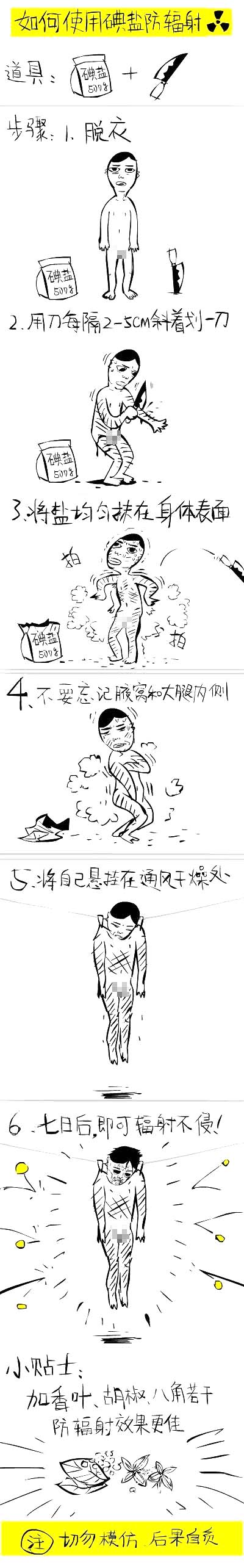 碘盐真的有那些作用吗?最近看到一幅诙谐漫画,正好诠释了“碘盐预防辐射”这一“特效”。