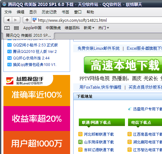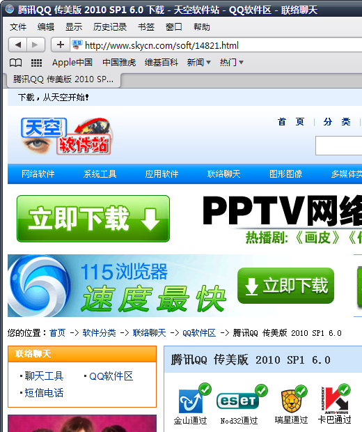 打开天空软件站的任一内页(http://www.skycn.com/soft/14821.html),这个是某某软件的下载页面。天空软件站旧版Logo依稀可见,大概是天空难以忘却曾经的辉煌吧。