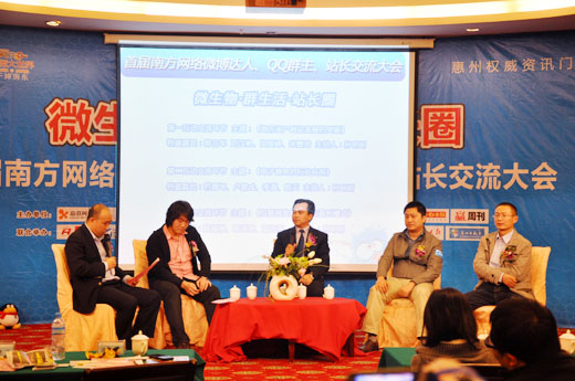 经历了由web1.0到web2.0的升级应用,全国性综合门户的崛起到地方门户的普及,行业细分到垂直门户的出现,互联网发展至今已经是百花齐放,SNS泛滥、移动互联网诞生、电子商务平台的繁荣昌盛,可谓是无处不在,全方位覆盖与纵伸。然而,在中国互联网不断发展的同时,作为网络最活跃与躁动的几类人群——QQ群主、微博达人、网络站长,也在不断思考与探索着,尝试寻找一条适合自己Q群、微博、网站发展的道路,而本次的首届南方网络微博达人、QQ群主、站长交流大会也应运而生了。
