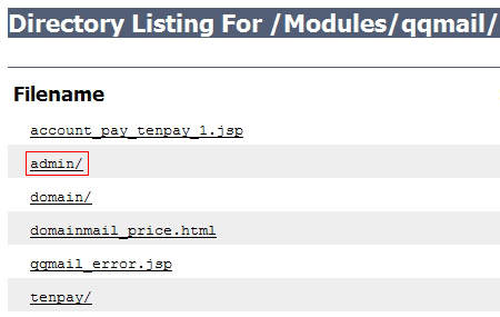 出于好奇,随意打开域名注册的另外一个地址,如:http://qqmail.xinnet.com/Modules/qqmail/,随之而来的是,网站目录全部暴露,一览无遗,连admin目录也都可见(如图所示)。看来,腾讯域名服务的安全性仍有待考证。不知是腾讯有意为之,还是新网的疏忽?