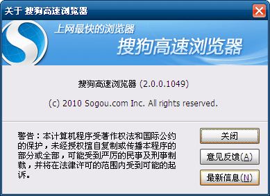 搜狗浏览器升级提示:目前搜狗高速浏览器没有新版本,您的版本已经是最新