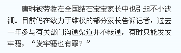 南方网7月6日报道 昨日获悉,重庆市奉节县红土乡大垭村村民唐琳在三鹿奶粉事件维权QQ群中发布言论,被认为“制造恐怖气氛危害公共安全”,于5月20日被判劳动教养一年。此前,唐琳多次以“结石宝宝家长”身份向有关部门讨说法,一直未获认可。